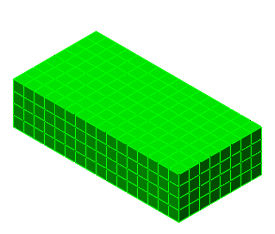 これは仮定の解析のために、1 つの部品をワイヤフレーム表示したものです。長方形部品の上面に円形辺に沿った境界条件が必要です(長方形部品にマウントされる円形溶接をシミュレートするために必要)。 円形部品は CAD モデルからは除外されており、長方形部品に追加される(表面分割や、仮想のステップやざぐりの追加などの)円形フィーチャは存在しないものと仮定します。 CAD ソリッド モデルになんらかの円形フィーチャを追加することなく、長方形部品の上面に長方形要素のパターンでメッシュが生成されます。拘束するための円形の節点はありません。 |