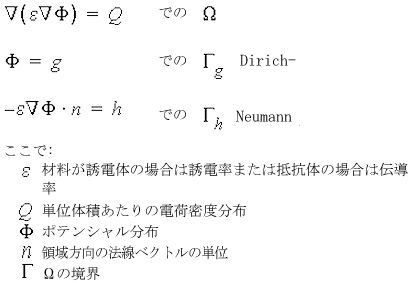 支配偏微分方程式(PDE)はポアソン方程式です。PDE は、誘電体の解析(静電界強度と電圧解析)と抵抗物質の解析(静電電流と電圧解析)の両方に有効です。問題の強形を次のセクションで定義します。