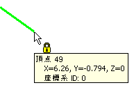 - 既存のポイントにスナップさせます。開始するポイントにカーソルを移動します。ロック アイコン(下図参照)が表示されたら、左クリックして頂点を選択します。