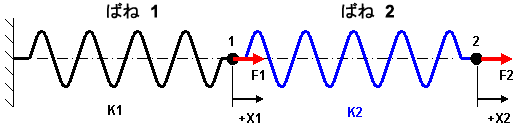 | F1 = (K1 + K2)*X1 - K2*X2 | 節点 1 |