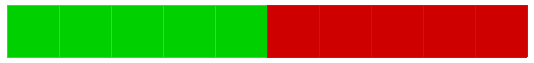 パーツ 1 (緑色)の 10 要素のプレート モデル。5 つの要素上のラインが選択され、パーツ 2 に変更されています。 |