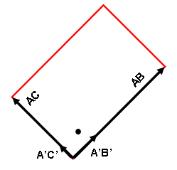 (d) 最終的な結果。[尺度]チェックボックスをアクティブにすると、長方形 AB の基礎がライン A'B' と同じ長さになります。