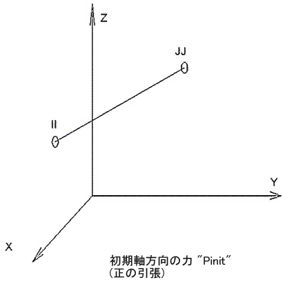 トラス要素では、力またはひずみの存在下でイベントを開始できます。こうした荷重の大きさは、[高度]タブの[初期軸方向の力]フィールドおよび[初期の軸方向ひずみ]フィールドで指定できます。