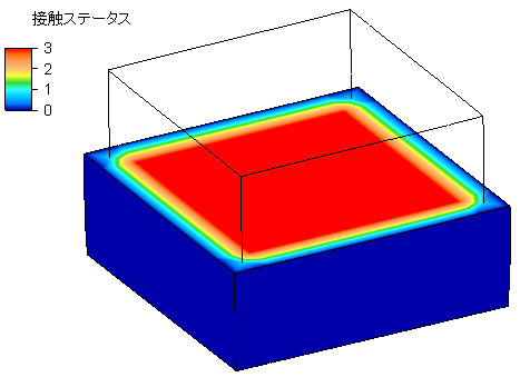 接触領域に沿ってパーツ/表面相互作用の状態を示す節点結果。ステータス結果は、四角形および三角形の要素面に対して使用できます。 整数値は、次のリストに定義されるように接触ステータスを示します。