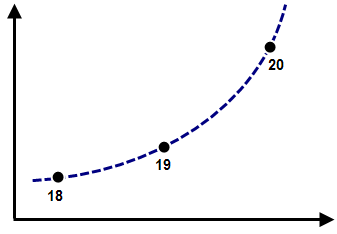 (b)解析中に時間ステップ・サイズが縮小されると、中間の時間ステップ(ステップ 19 および 21)における変位は、荷重曲線のデータ ポイント(ステップ 18、20、および 22)を基にして線形に補間されます。時間ステップ 18 と 20 の間では、変位は線形になるため、速度は一定であり、したがって加速度は 0 となります。時間ステップ 20 と 22 の間でも、荷重曲線の補間により速度は一定であり、したがって加速度は 0 となります。時間ステップ 20 では速度が突然変化しているため、大きな力がかかり、収束に問題が生じる場合があります。