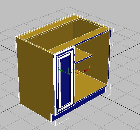 3ds Max에서 X축을 기준으로 캐비닛이 대칭 이동됩니다.