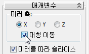 미러 축 그룹에서 대칭 이동을 켭니다.