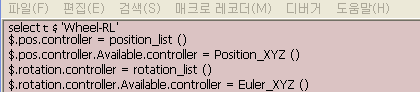 이전 절차에서는 수동으로 Chevy의 바퀴 하나에 위치 및 회전 리스트 제어기를 할당했습니다. 이제 전체 리그가 해당 애니메이션에 동일한 좌표계를 사용하도록 매크로 레코더를 사용하여 자동으로 나머지 3개 바퀴와 자동차 몸체 및 스티어링 휠에 리스트 제어기를 할당합니다.