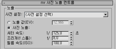 - 환경 및 효과 대화상자에서 셔터 속도를 실외 장면에 적합한 노출인 512(1/512초)로 재설정합니다.