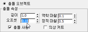 - 충돌 특성 그룹에서 간격띄우기 값을 0.15로 변경합니다.