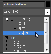 - 수정자 스택에서 의류 제작자 항목을 클릭하여 이음새 하위 오브젝트 수준을 종료합니다.