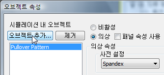 의상 시뮬레이션이 제대로 실행되려면 오브젝트 특성 대화상자에서 몇 가지 조건을 설정해야 합니다.