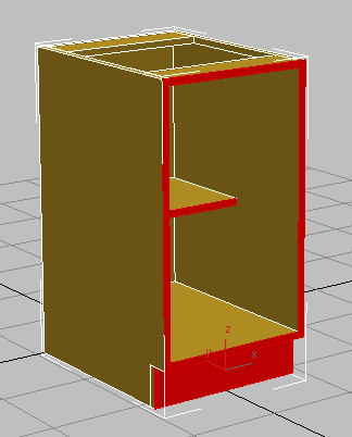 을 사용해 궤도 선회한 다음 Ctrl 키를 누른 채 클릭하여 캐비닛의 반대쪽에서 해당 다각형을 선택합니다. 3ds Max에서 캐비닛 아래쪽 내부 주위로 연결되는 다각형 루프를 선택합니다.