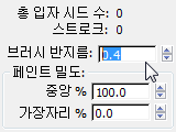 - 설정 롤아웃에서 브러시 반지름 값을 0.4로 변경합니다.