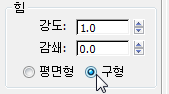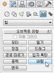 힘 그룹에서 바람 방향을 구형으로 변경합니다.