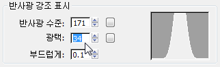 - 반사광 강조 표시 그룹에서 반사광 수준을 171로, 광택 값을 34로 변경합니다.