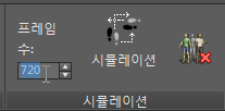 시뮬레이트 패널에서 프레임 수 값을 720으로 변경합니다. 그러면 30초 애니메이션이 생성됩니다.