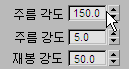 - 이음새 롤아웃에서 주름 각도 값을 이번에는 -150.0으로 변경하고 주름 강도 값은 다시 5.0으로 변경합니다.