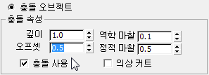 - 충돌 특성 그룹에서 간격띄우기 값을 0.5로 변경합니다.