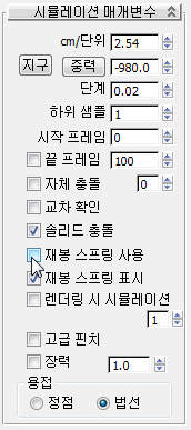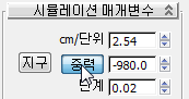 - 시뮬레이션 매개변수 롤아웃에서 중력을 클릭해 다시 켭니다.