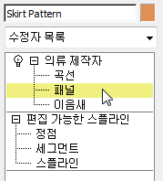 치마 패널을 해당 위치로 이동하고 이음새 만들기: