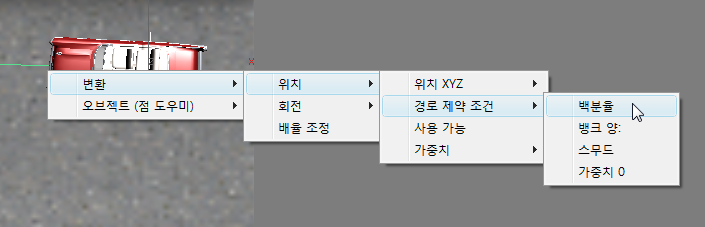 - 자동차 바퀴 중 하나를 클릭하고 변환