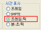 시간 표시 그룹에서 프레임:틱을 선택합니다.