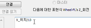 이렇게 하면 섀시 X 위치가 Wheel-FL Z 회전을 제어하지만 반대 방향으로는 제어되지 않습니다.