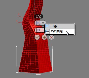 다각형별 옵션을 선택하면 선택한 각 다각형에 폴리 편집 삽입이 적용됩니다.