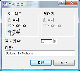 오브젝트 그룹에서 참조를 선택합니다. 오브젝트의 이름을 Building 1 - Mullions로 변경한 다음 확인을 클릭합니다.