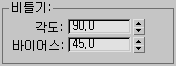 비틀기 그룹에서 각도를 90.0으로 설정하고 바이어스를 45.0으로 설정합니다.