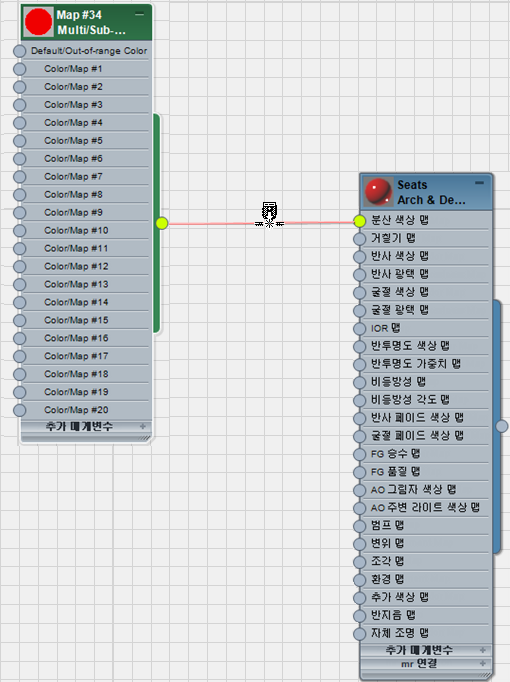 - 재질 노드와 다중/하위 맵 노드를 둘 다 볼 수 있도록 슬레이트 재질 편집기의 활성 뷰에서