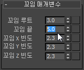- 곱슬 머리 매개변수 롤아웃을 닫고 꼬임 매개변수 롤아웃을 엽니다. 다음 설정을 변경합니다.