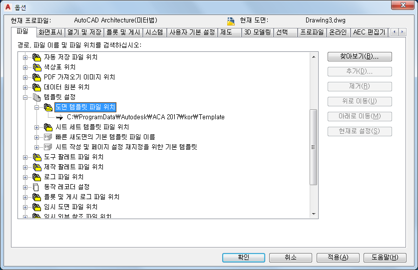 “옵션” 대화상자에서 템플릿 파일 위치를 설정합니다.
