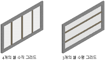 조합창/문 그리드에 대해 셀의 고정된 수 지정