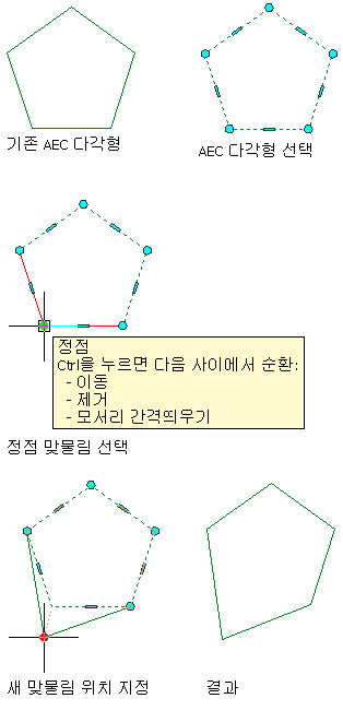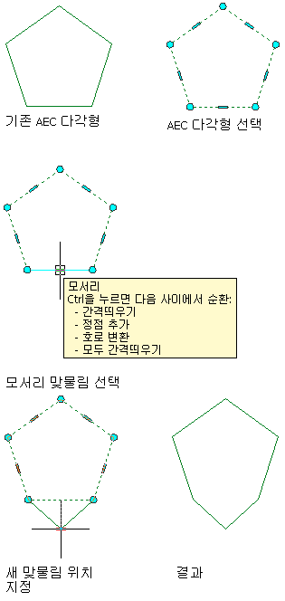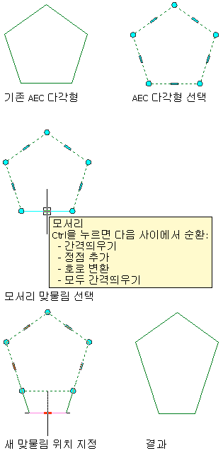 AEC 폴리곤의 모서리 그립을 사용하여 해당 폴리곤의 모서리에 정점 추가