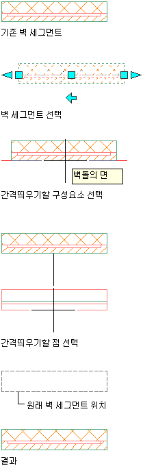 기존 벽 세그먼트 구성요소에서 간격을 띄워 벽 세그먼트 이동