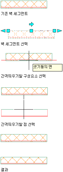 이 간격띄우기 명령을 사용하면 샛기둥 또는 벽 마감과 같은 특정 벽 구성요소의 면 또는 중심으로부터 명확한 거리만큼 간격을 띄워 벽을 복사할 수 있습니다.