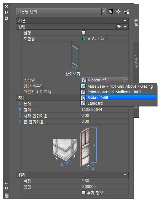 다음 과정에 따라 커튼월 단위에 대한 서로 다른 스타일을 선택하십시오.