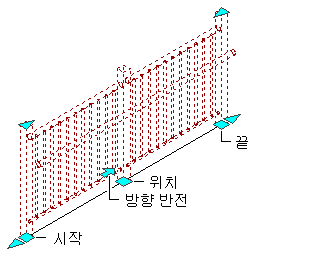 난간 시작, 끝, 위치 및 역방향 그립 보기