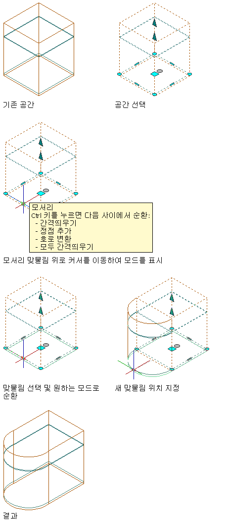 모서리 그립을 사용하여 공간 경계의 모서리 간격띄우기