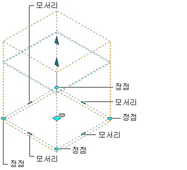 모서리 그립을 사용하여 공간 경계의 모서리에 정점 추가