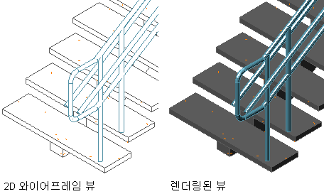 2D 와이어프레임 모형 및 렌더된 뷰의 난간