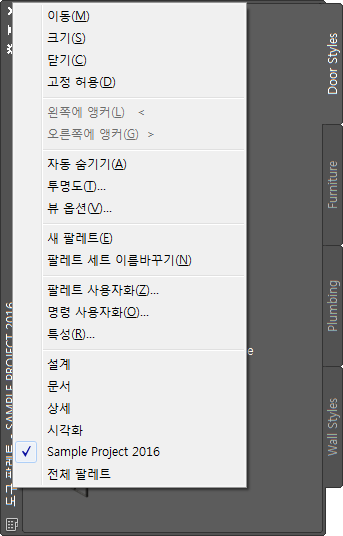 프로젝트 도구 팔레트 그룹 선택