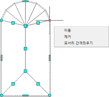 | 선택된 모서리를 호로 변경