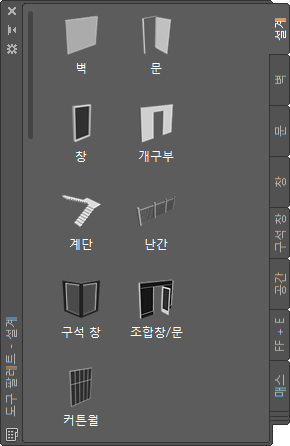 CAD 관리자 또는 다른 사용자가 작성한 사용자 팔레트는 프로젝트나 사무용 표준에 맞게 사용자화된 특성을 가진 개구부 도구를 포함할 수도 있습니다.