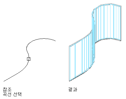 다음 과정에 따라 선, 폴리선, 호 및 원과 같은 라인워크로부터 커튼월을 작성하십시오.