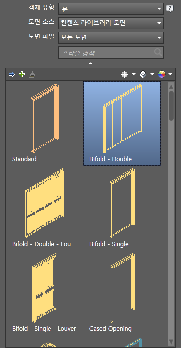 스타일을 도면으로 가져오거나, 선택한 스타일로 객체 추가 명령을 시작하거나, 선택한 객체에 스타일을 적용합니다.