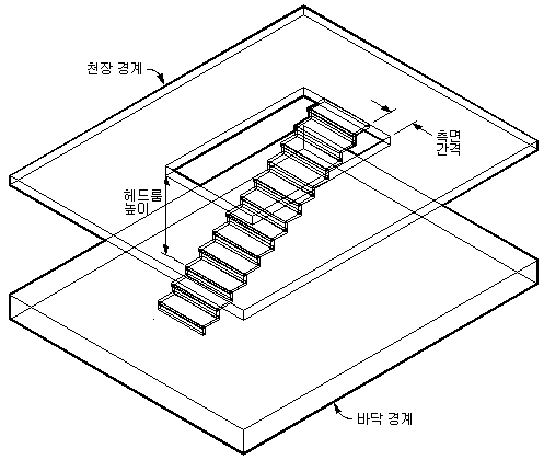 계단과 공간 객체에 헤드룸 높이 및 측면 간격 지정