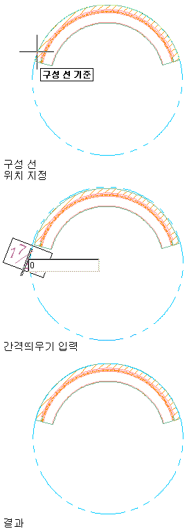 호 벽 세그먼트에 기반한 간격띄우기 0(영)의 구성선 그리기